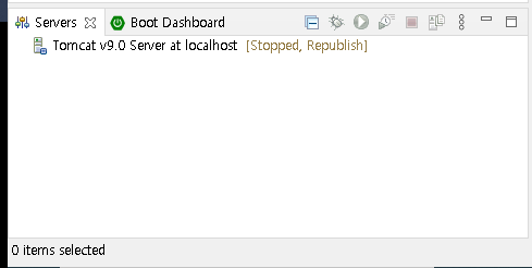 그림 004. Tomcat v9.0 Server at localhost 더블 클릭하셔서 설정 페이지를 열어주시고 HTTP/1.1 Port 부분을 다른 숫자로 변경 해주시고 Use Tomcat installation (takes control of Tomcat installation) 체크 후 저장 해줍니다