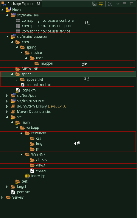새로 구성되는 구조는 딱히 정해진 구조도 없어서 그냥 구조를 바꾸면 되고 구조를 바꾼다면 그 경로를 알맞게 web.xml 에서 설정 해주는 것만 유의하면 된다.