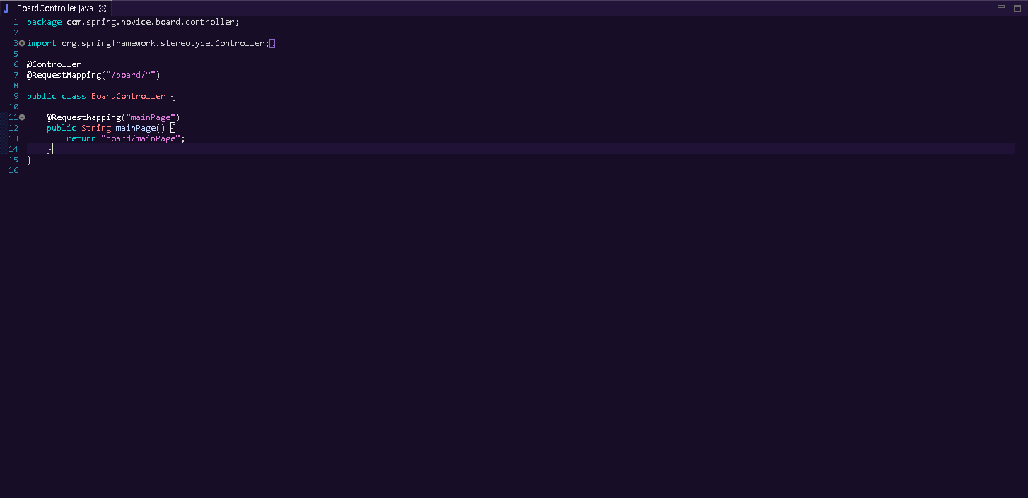 11행 : @RequestMapping : viewName을 mainPage로 설정한다.