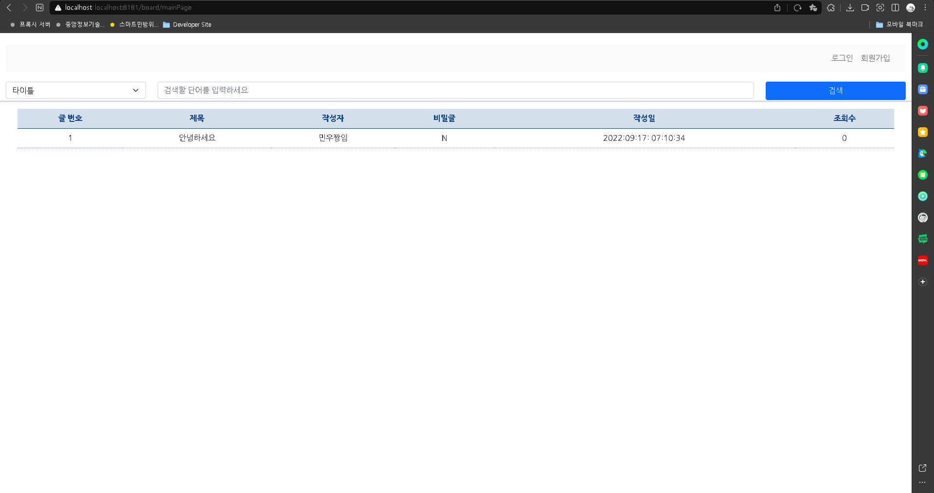 로그인 하지 않고 목록페이지를 조회하게 되면 글쓰기 버튼이 안보이는거를 확인 할 수 있다.