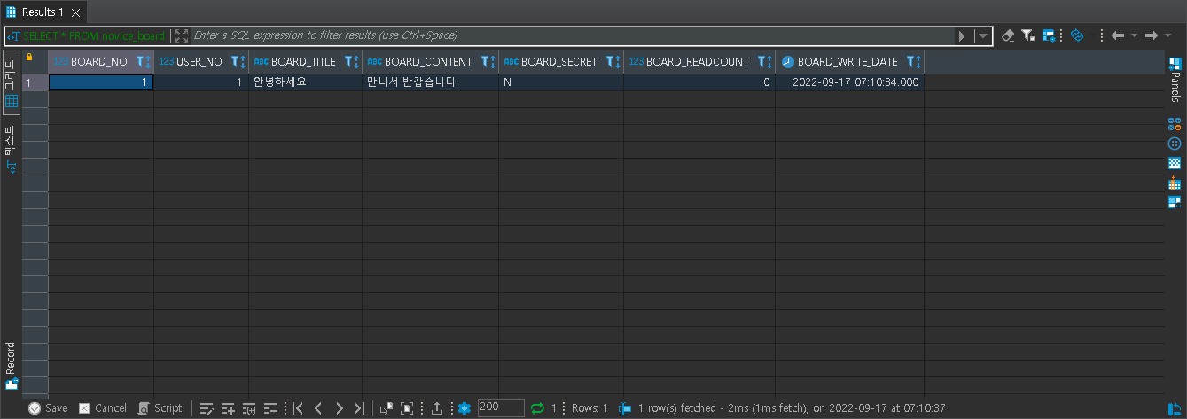 먼저 게시판에서 글을 작성할 경우 작성한 글의 목록을 띄우는 기능 먼저 구현 하도록 하겠습니다.