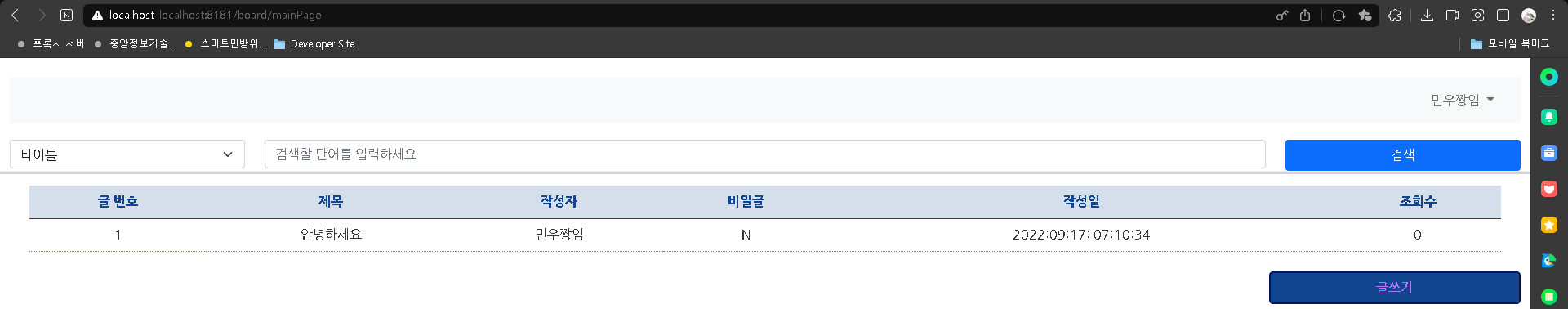 로그인을 했다면 글쓰기 버튼이 정상적으로 노출된다.