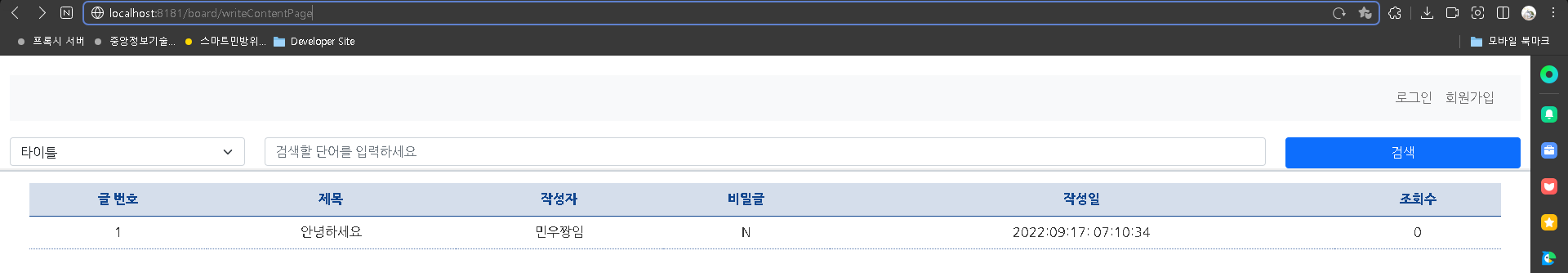 로그인 하지 않고 writeContentPage로 이동하려고 한다면 자동으로 로그인 페이지로 넘어간다.