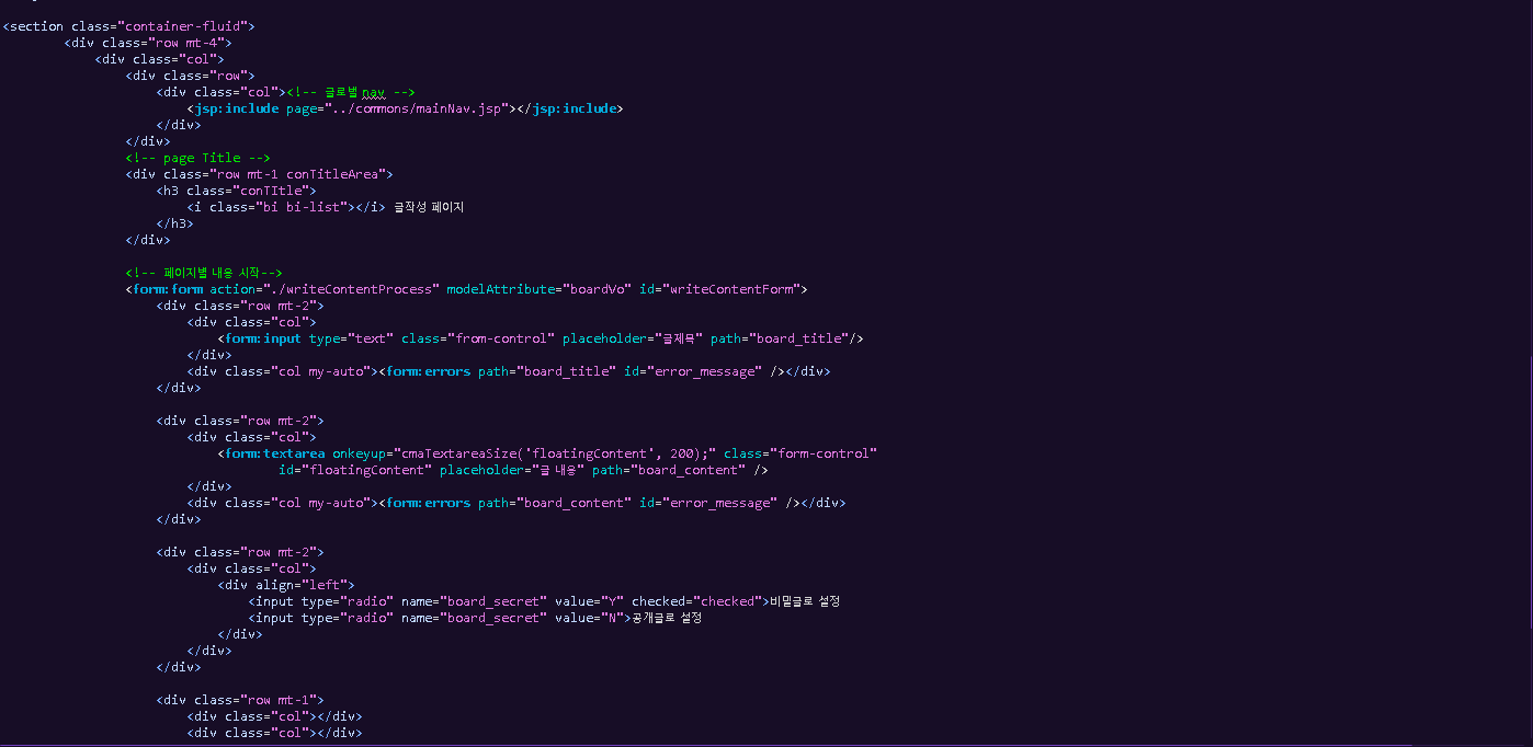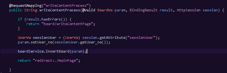 1행 : @RequestMapping : viewName를 writeContentPage로 한다.