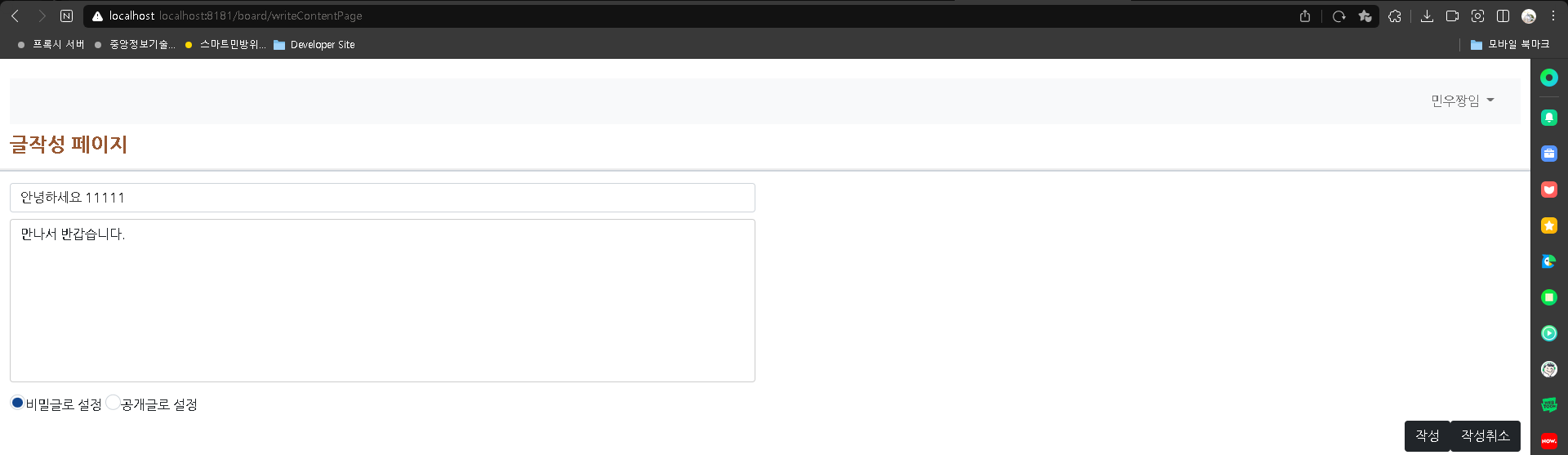 이번에는 본격적으로 게시판 기능을 만들어 보자 먼저 글쓰기 기능을 만들자.