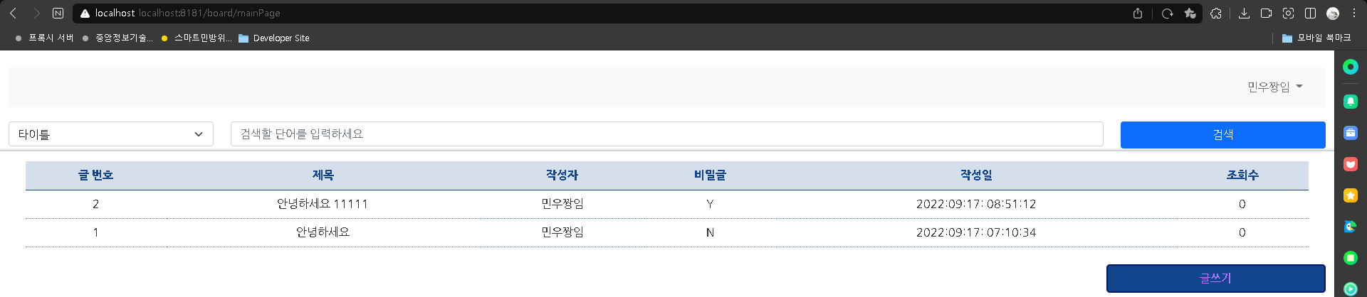 작성 버튼을 누르게 되면 메인페이지로 리다이렉트 되면서 목록에 글이 뜨는것을 확인 할 수 있다.