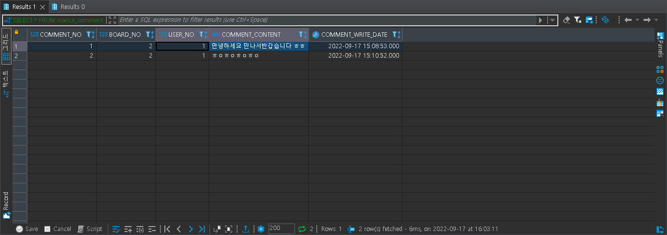 쿼리에 게시글 번호로써 댓글이 없으면 댓글이 안뜨고 게시글 번호로써 댓글이 존재한다면 목록에 출력됩니다.