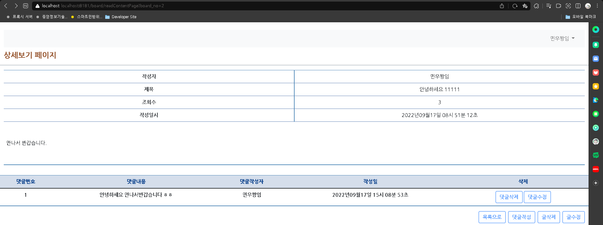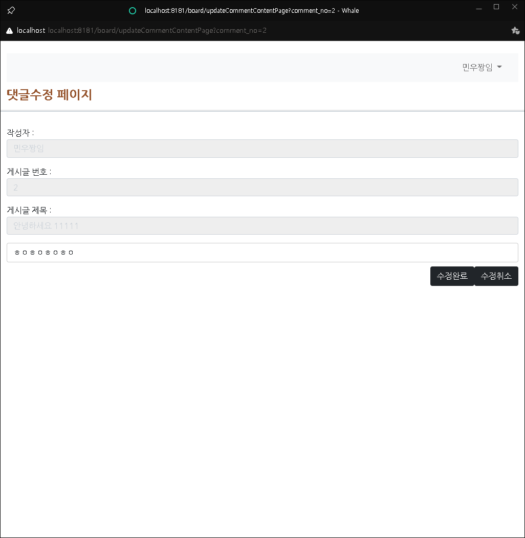이번시간에는 댓글을 수정하고 삭제하는 기능을 만들어 보겟습니다.