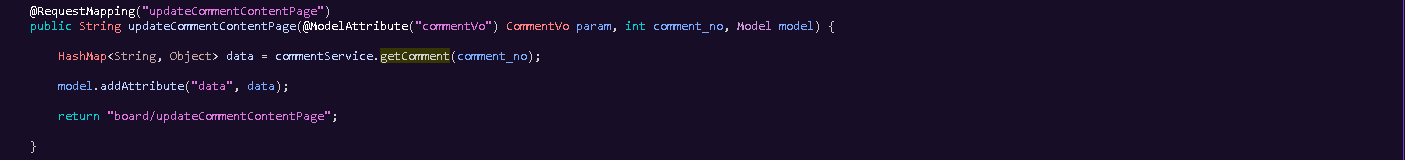 @RequestMapping("updateCommentContentPage") : url 주소를 updateCommentContentPage로 설정한다.