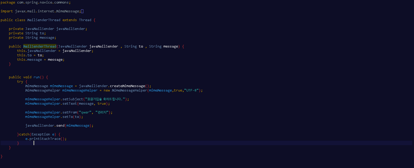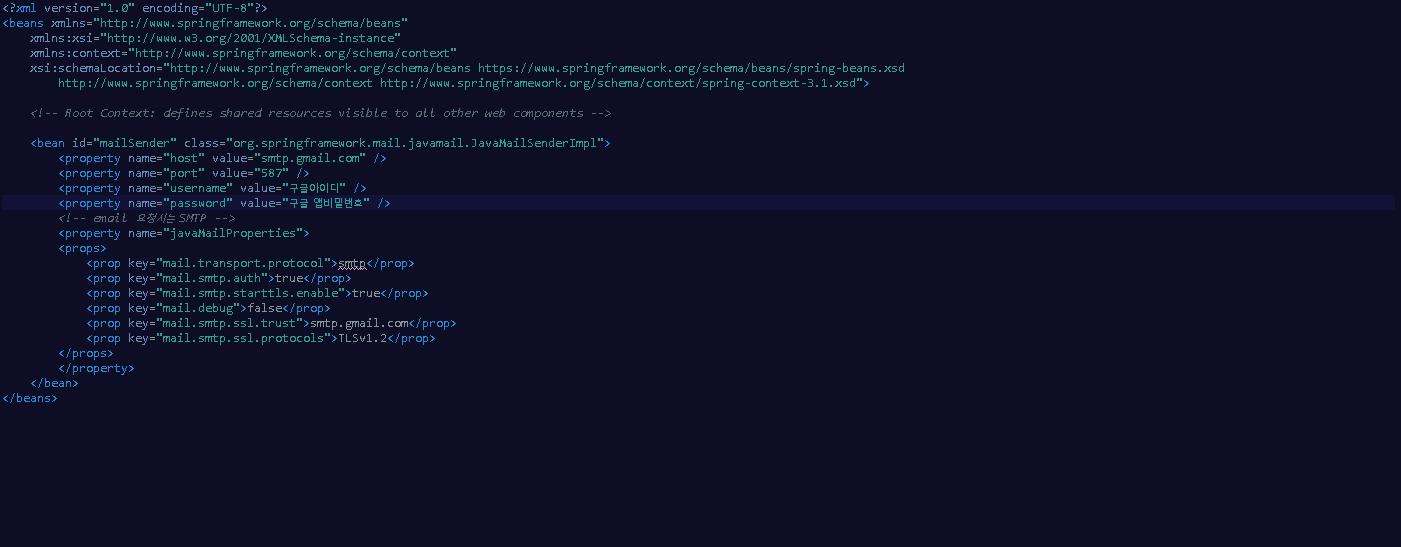 메일클래스 관련 빈설정을 추가로 등록해줍니다. context-root 에 넣어도 상관없습니다.