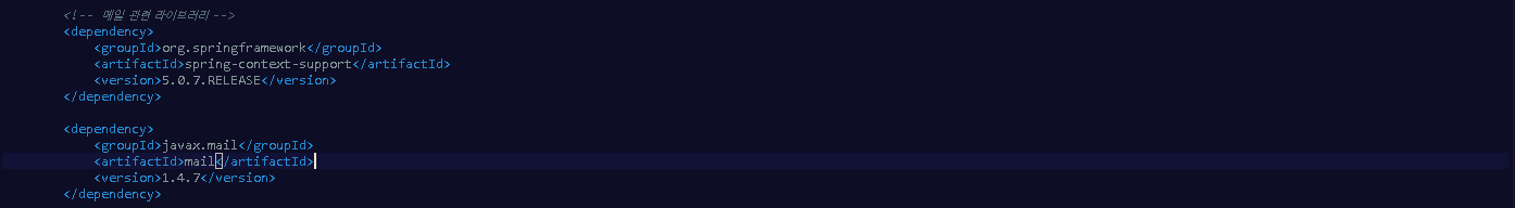 먼저 스프링에서 메일을 보내기 위해서는 외부 라이브러리 두개를 추가해 주어야 하는데요